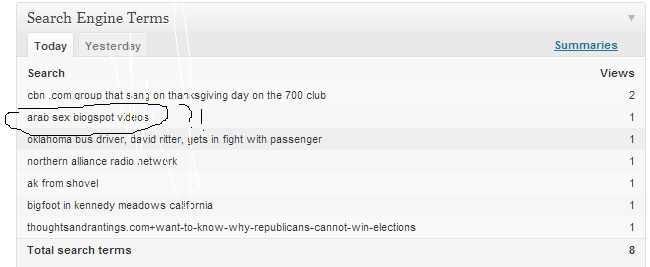 I have plenty around here, but “Arab sex videos on blogspot” is not something that I have. 😯