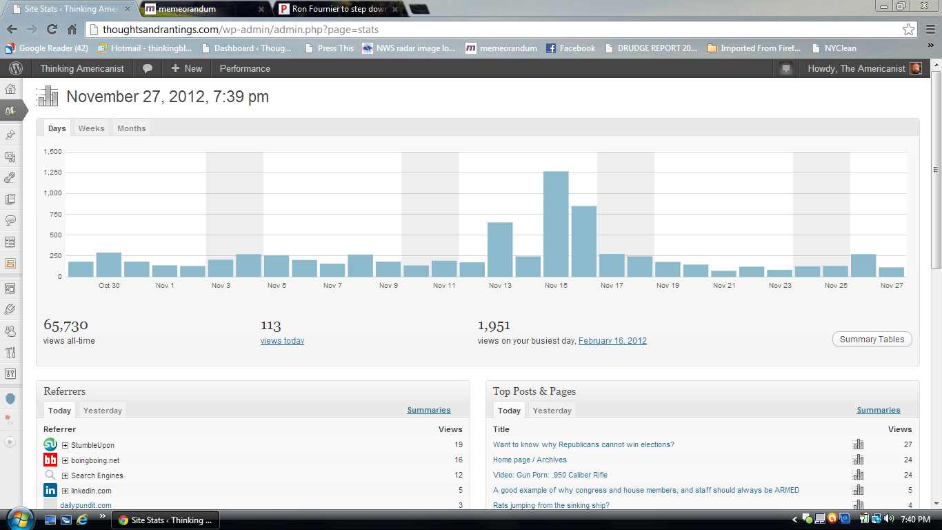 I was over here lying in the bed, waiting for the soup that Mom was making for supper, when I read this. This is when it hit me; “what if they are doing that?” It would not shock me one iota. The Conservative blogosphere, the Tea Party, the Republicans on the hill — all have been a huge thorn in the side of the President. Who is to say that the President did not order an big time, super secret investigation and take down of the right wing blogosphere?